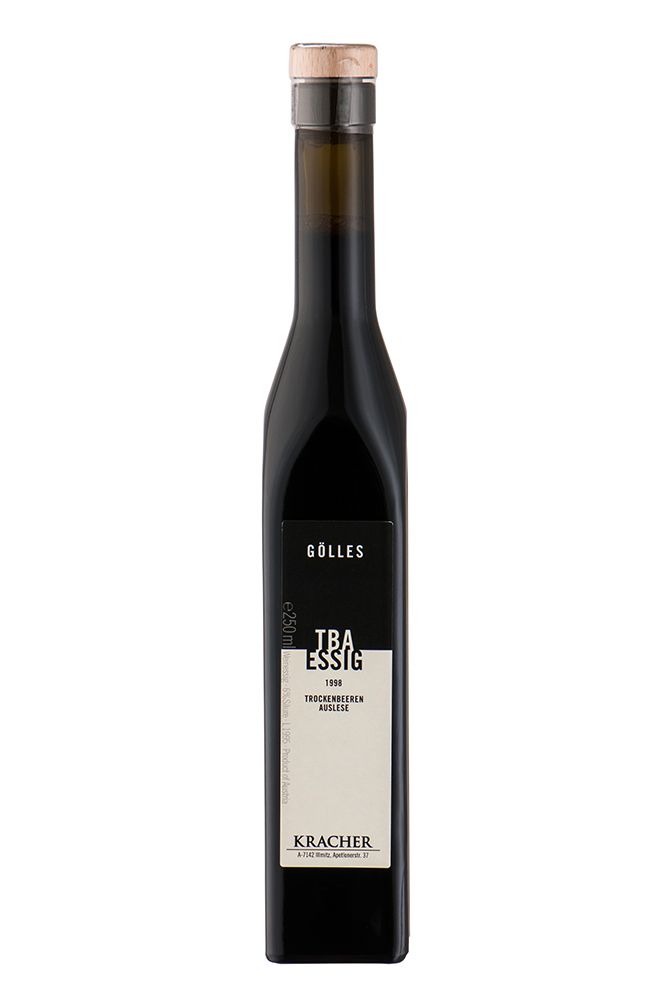 TBA-ESSIG wurde aus Trockenbeerenauslesen erschiedener Jahrgänge vom Weinlaubenhof Kracher im Hause Gölles produziert.