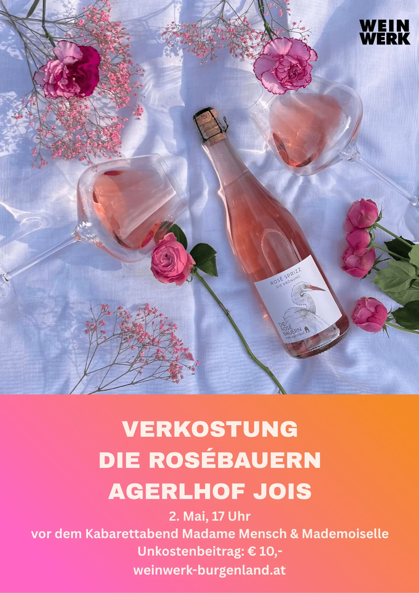 Hannah & Rudi Wetschka vom Weingut Agerlhof in Jois laden zur Verkostung – und zeigen, wie vielfältig Rosé sein kann. Seit über 15 Jahren dreht sich bei ihnen alles um die schönste Farbe im Glas.